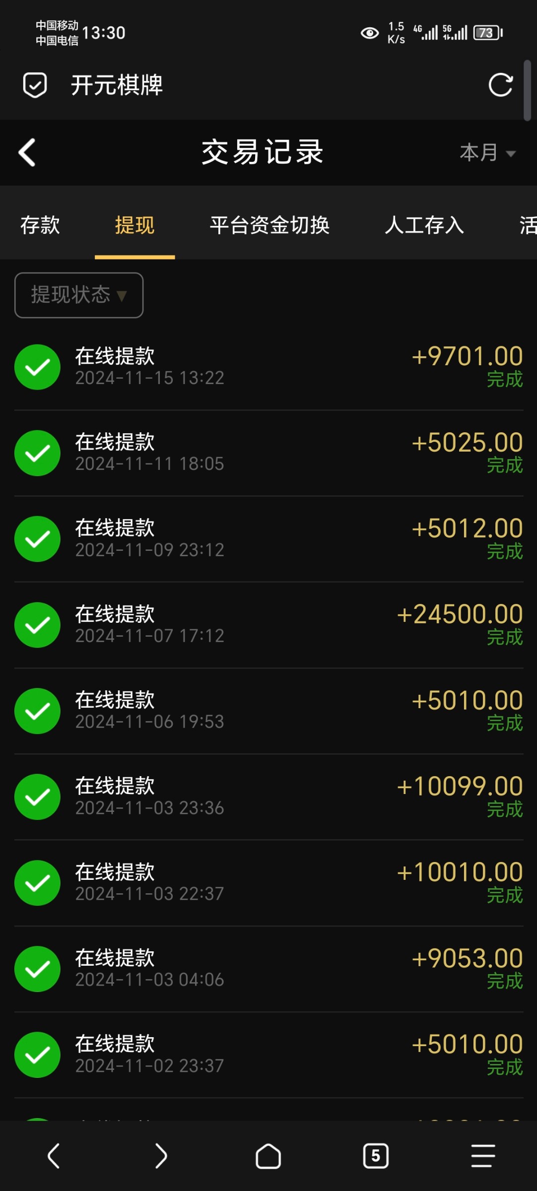 历史充值过1000+,今天签到彩金上去了让充值能充吗