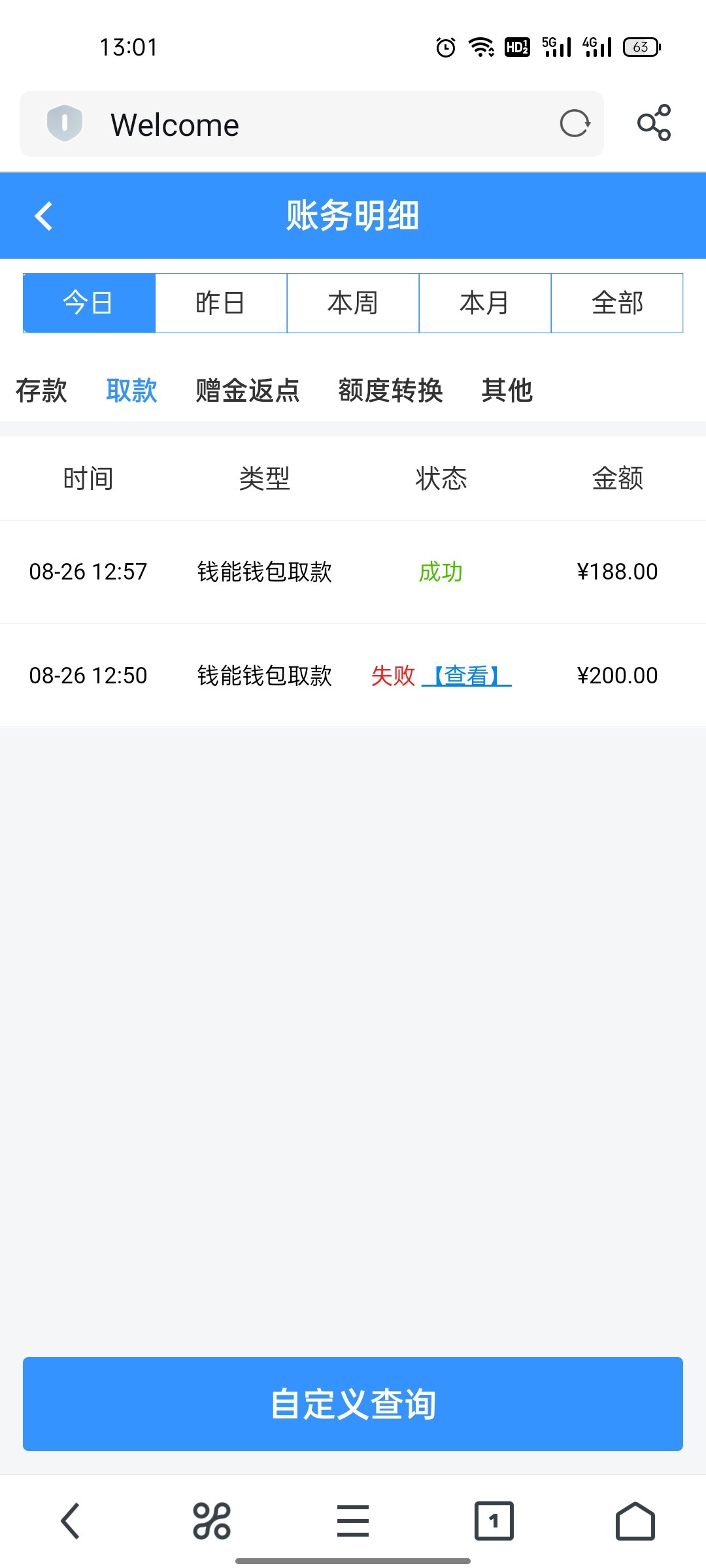 出款到账   第一个号签到8没打出来  第二个打到237  只能出188剩下的清零