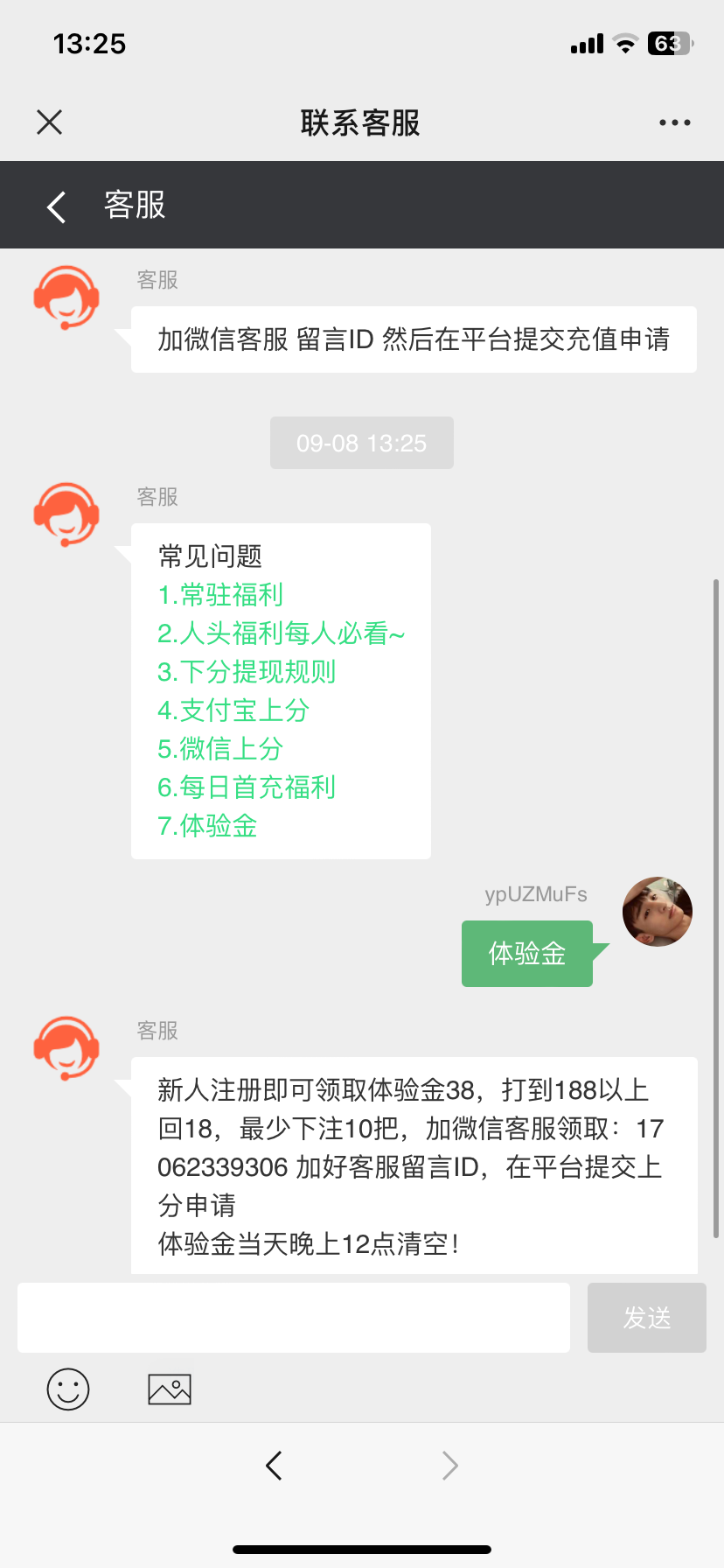 新人注册即可领取体验金38,打到188以上回18,最少下注10把,加微信客服领取:17062339306 加好客服留言ID,在平台提交上分申请