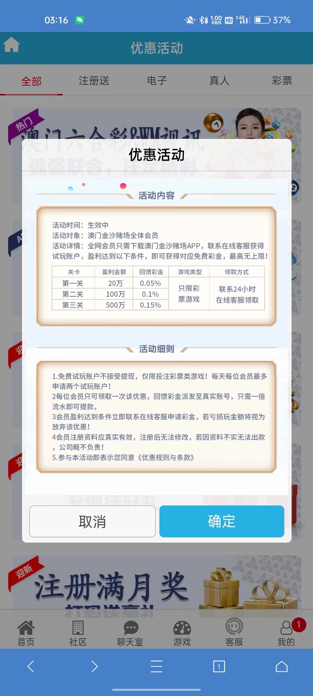 活动:新用户注册联系客服申请2000体验金,打到20w找客服送100彩金,还有100w/500w额度,只能彩票