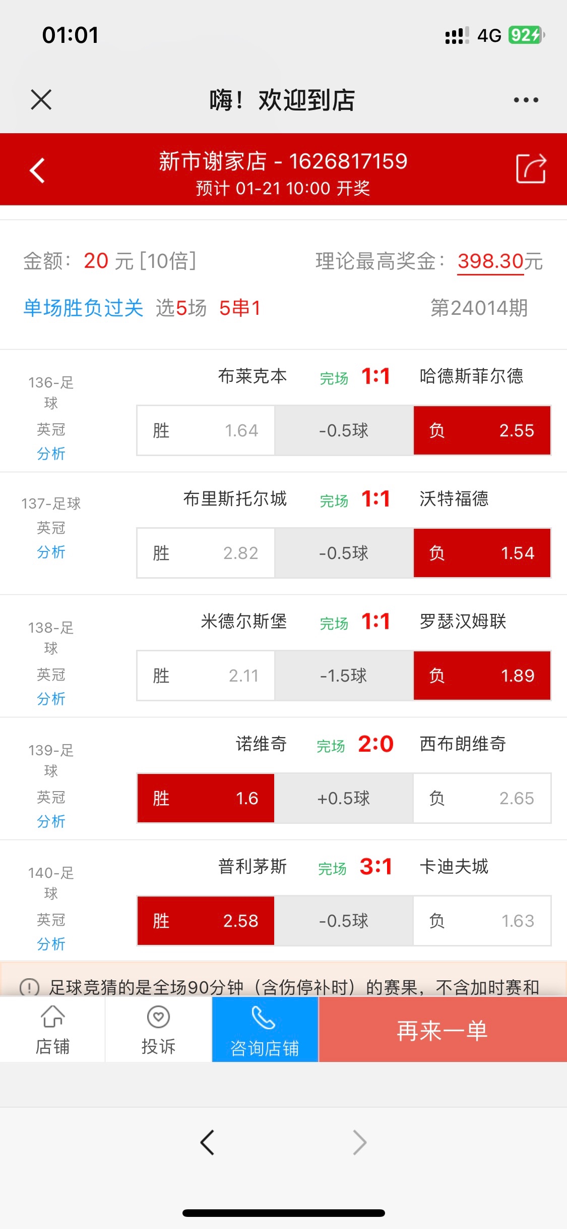 6串1全中,34倍美滋滋