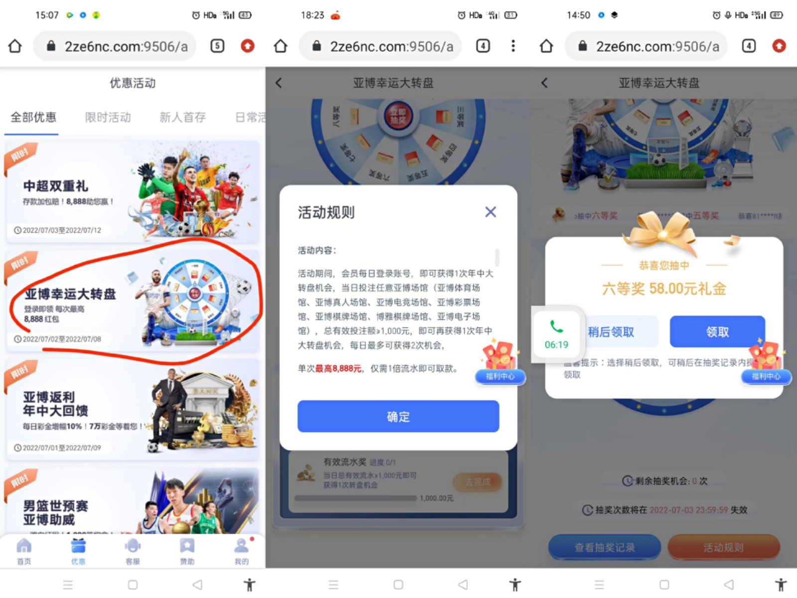 活动:新老用户登录活动里面幸运大转盘每天登陆都可以抽一次奖,半黑台勿充值,很多抽到518都试试