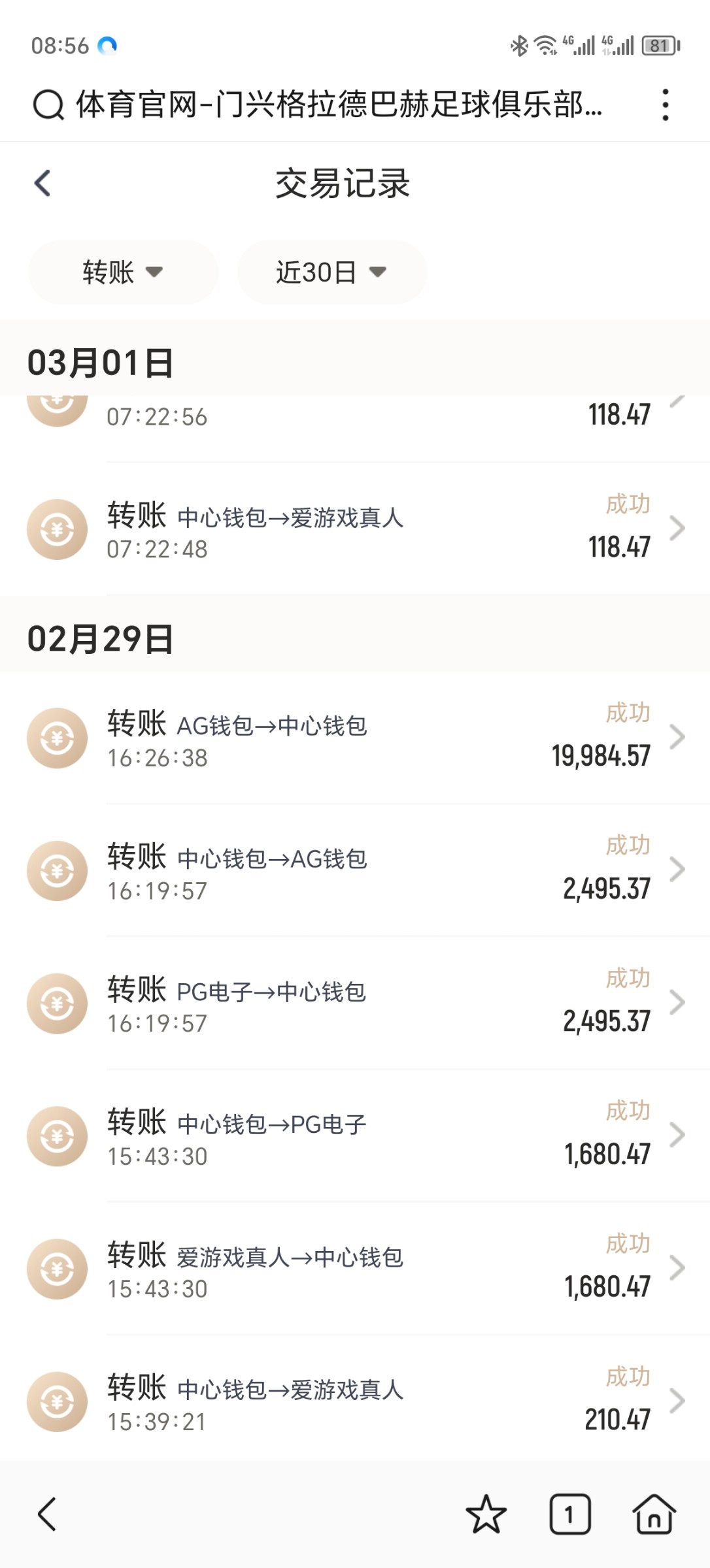 我乐鱼提了288,爱游戏提了100。
