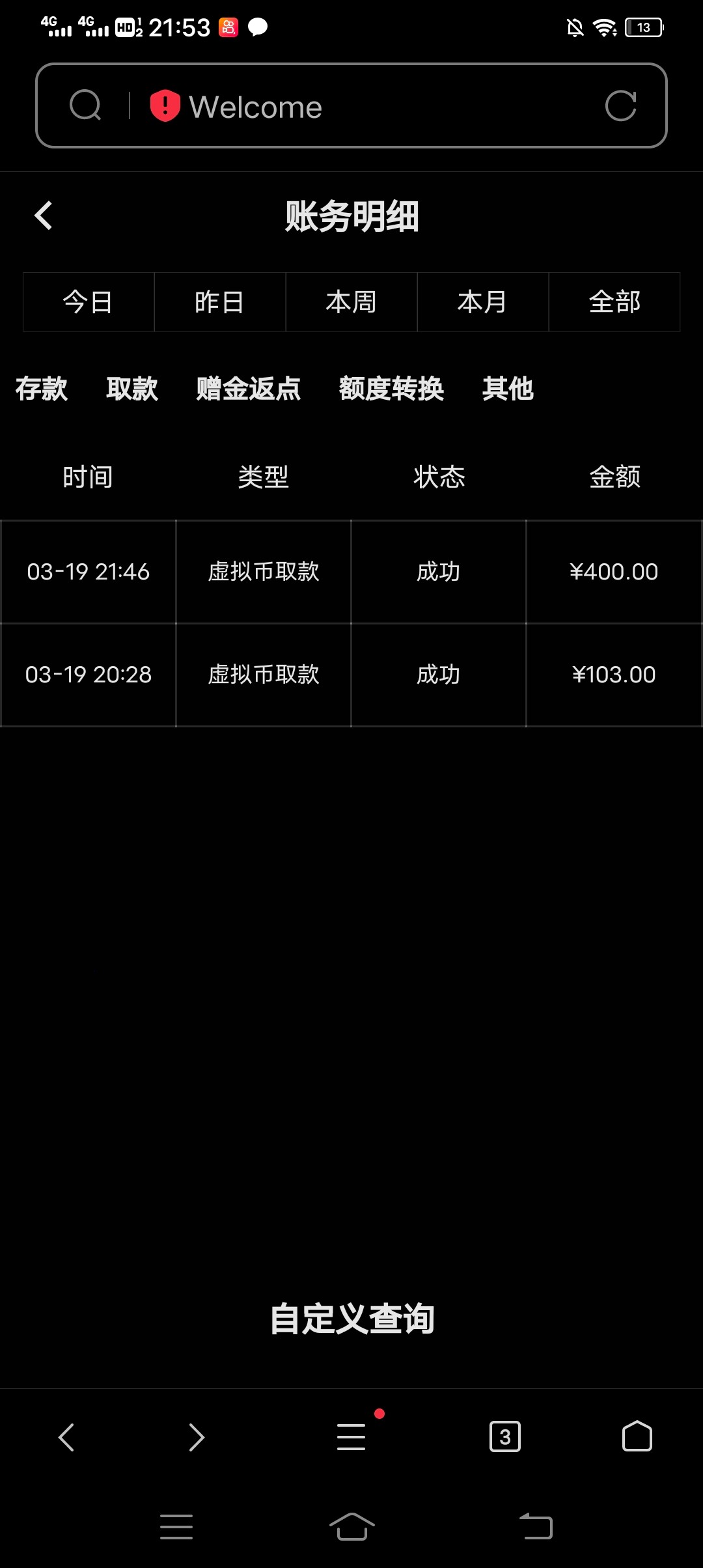 签到了半个月一直没有给,今天签到两块麻将1打到300,然后拉两块出免费就退出去了,接着去提现100,到账了,然后又去那个免费直接给四百,我以为不会出了,抱着试一试,没想到居然到账了,提现这个四百就五分钟就到账了