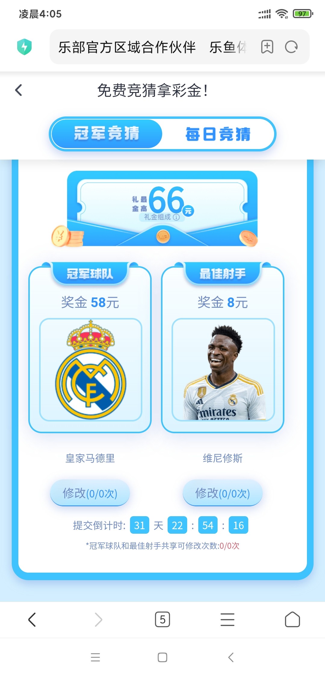 欧冠冠军一共就四个选项,射手六个,每个台子猜一个吃低保懂?后续每日竞猜也是。