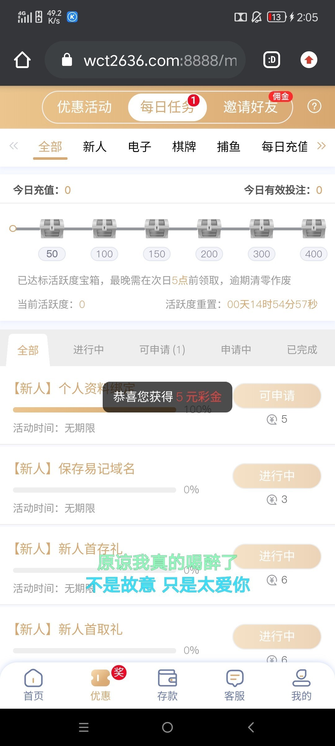 注册绑卡,优惠每日任务,先领五元首页,上面的域名点击保存领三元,共计八元出款自测啊!