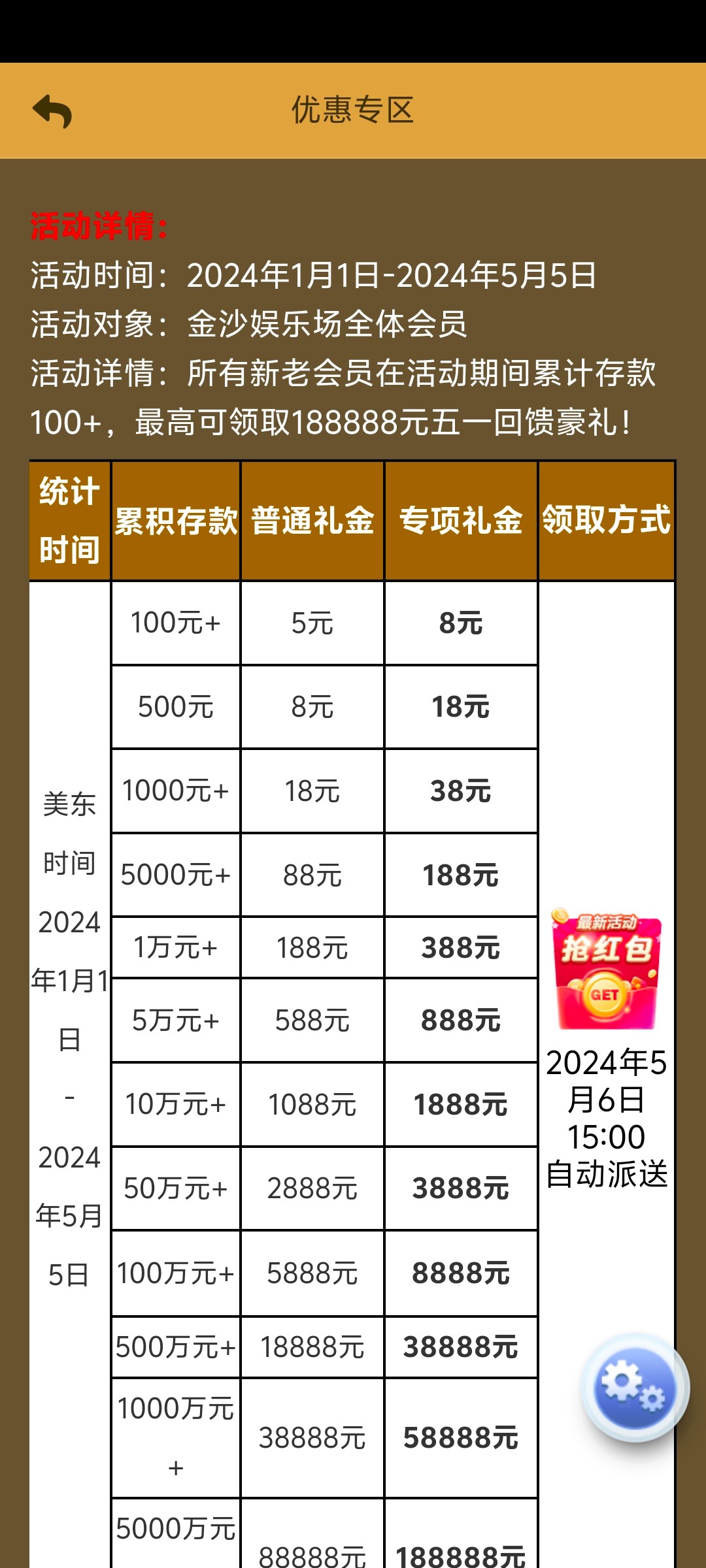 金沙五一回馈