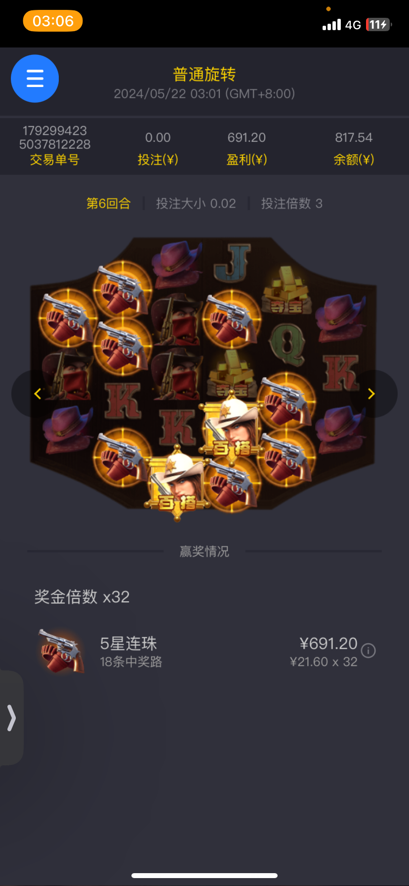 10块反水的平拉 还连进5次 但是没爆 就平拉给了