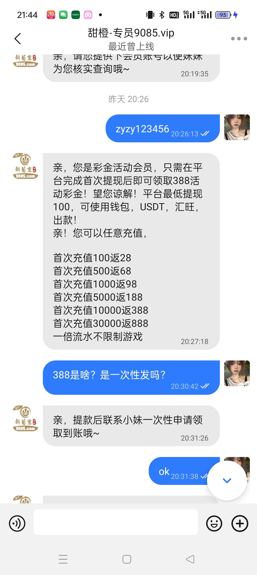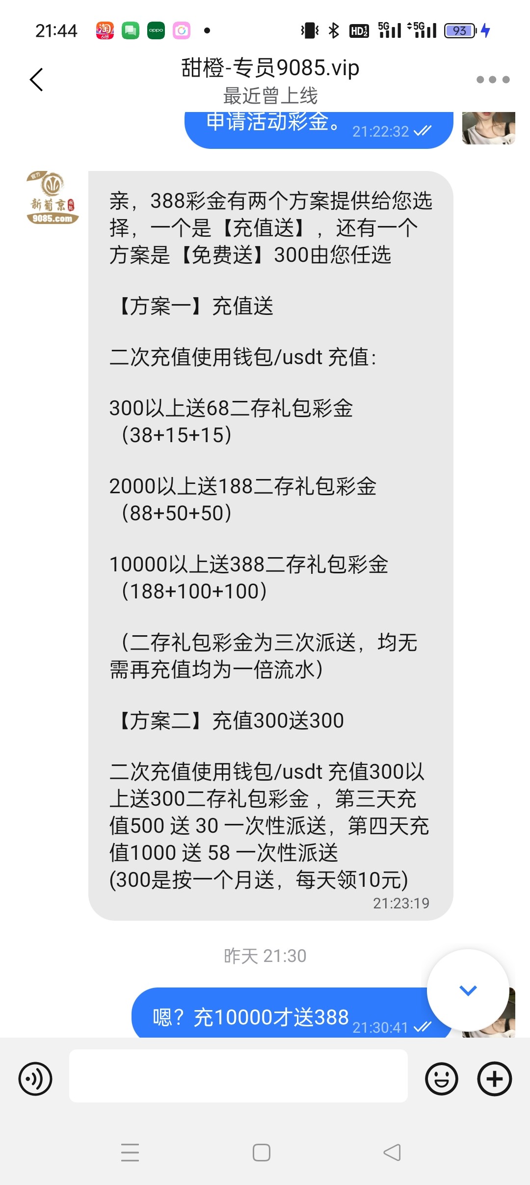 真是傻逼游戏啊!我还以为赠送388。原来要充值1万才送388。或者充300以上分30天送。搞得那么神秘感,还要我先充值完提款之后才可以申请388。
