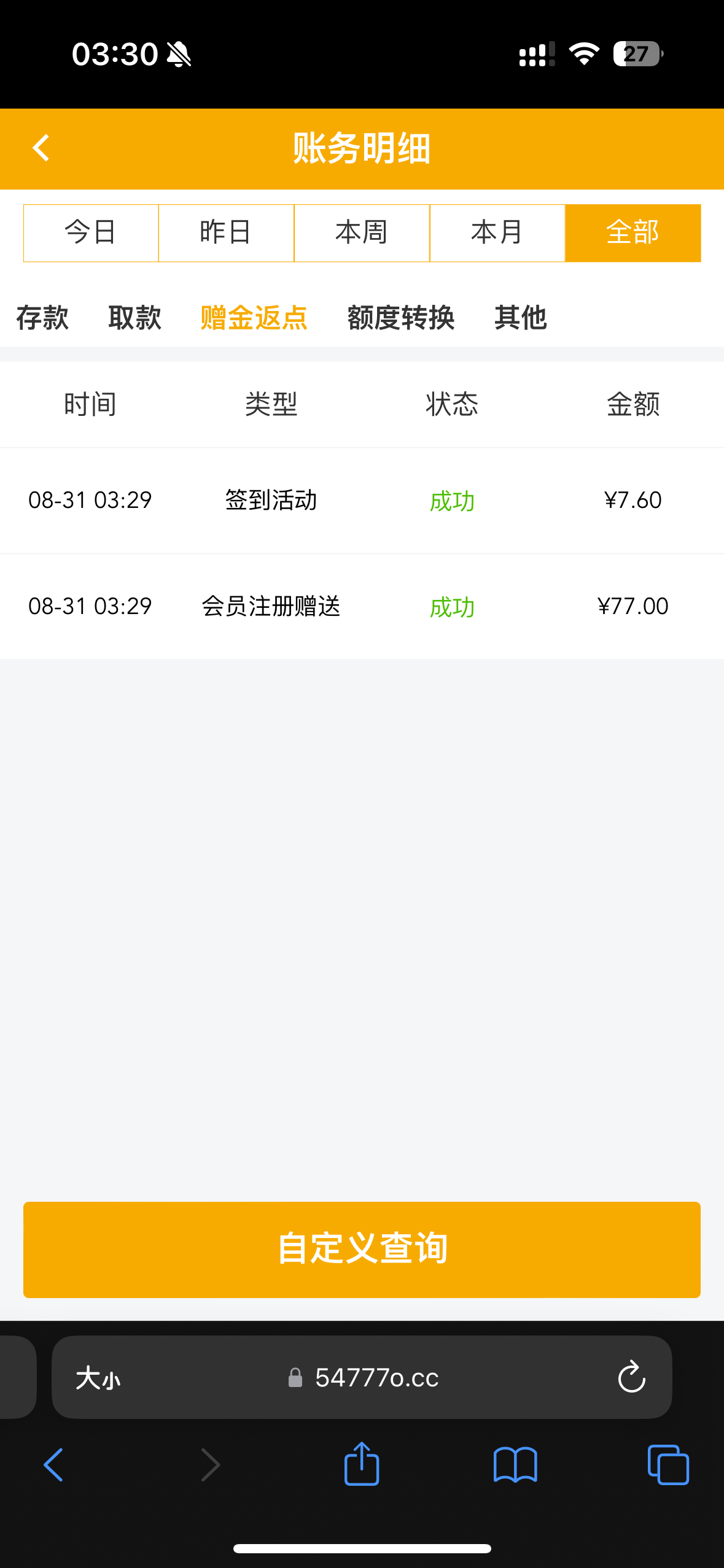 送了77签到送7,84打到1000+,刷完流水710,充值50打到900提款成功。