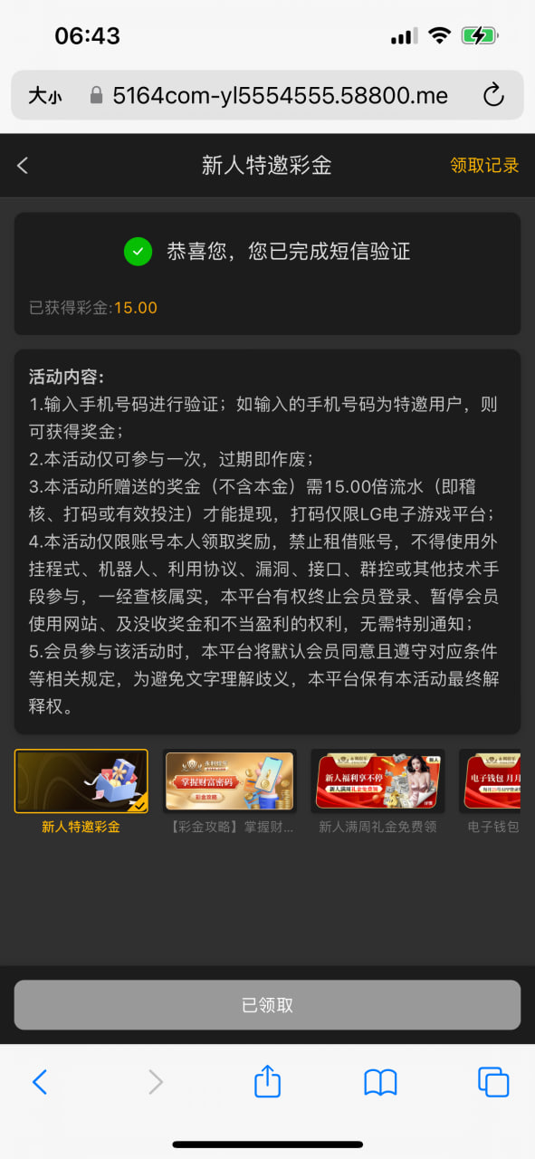 新用户注册绑定信息,在优惠里找到特邀短信,用常用的手机号码试试,没有也可以先注册,会来短信的,禁止充值,出款自测。!