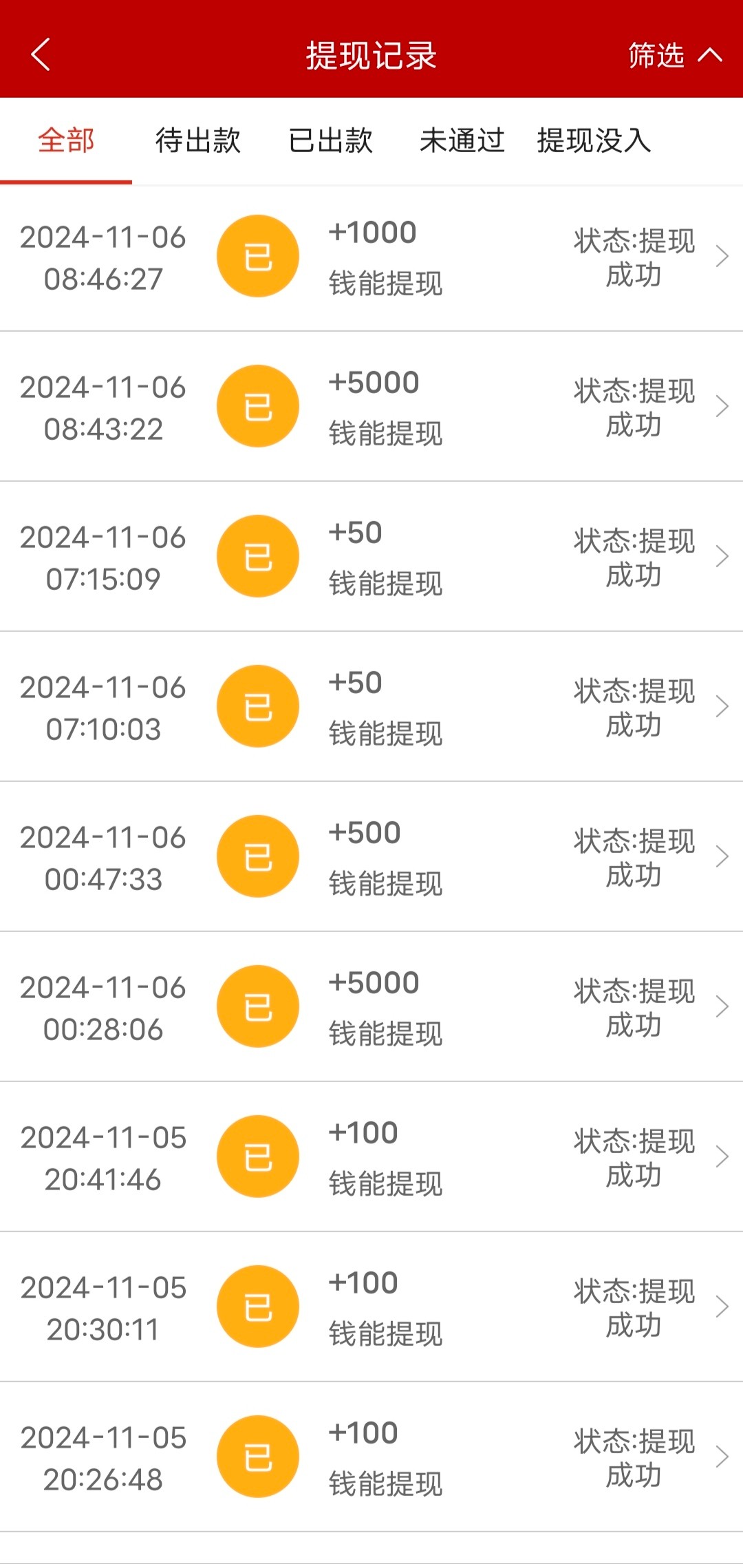 我刚刚上20提了450,竟然给我到账两笔,哈哈哈哈