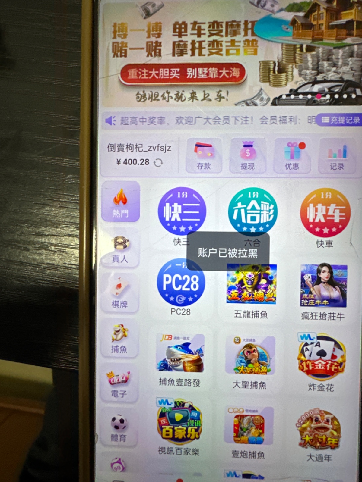 狗东西一个 电话送38没打出来 充值100提400 要我手持 给了还是封号 出生直播 穷疯了这两b枣都黑