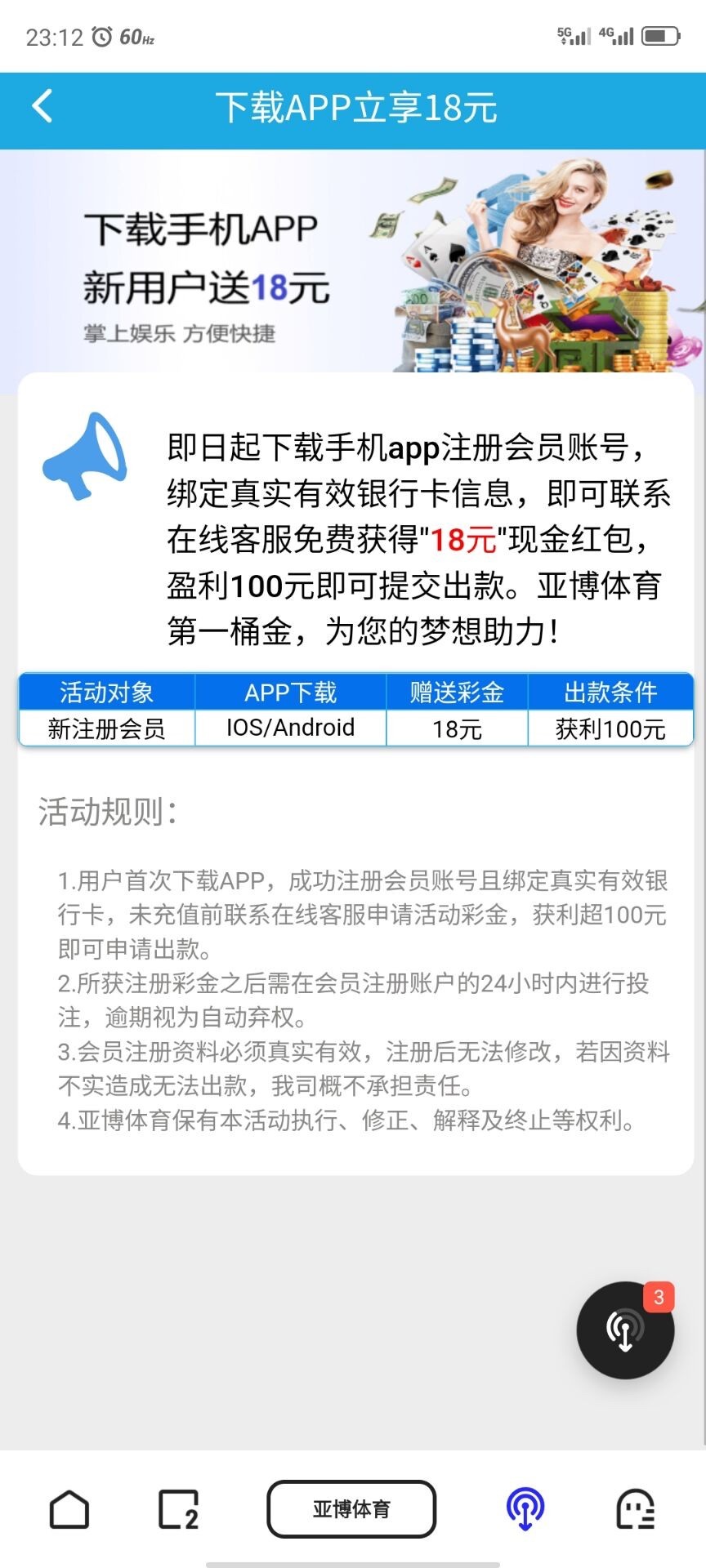 新用户下载APP注册绑卡联系在线客服自助申请18/100提,彩金限制自行查阅网站。