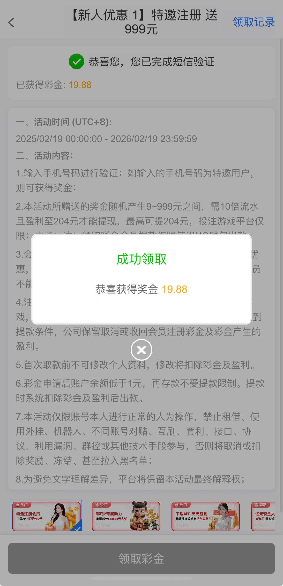 收到短信特邀下载注册去活动里面领也可以去碰瓷
