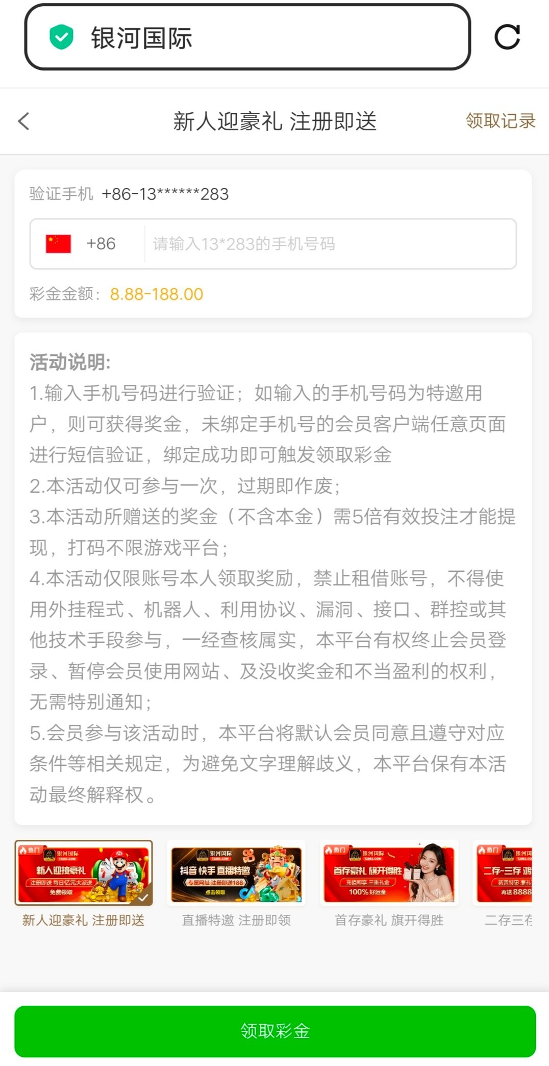 【银河72991】碰瓷特邀彩金/任务彩金