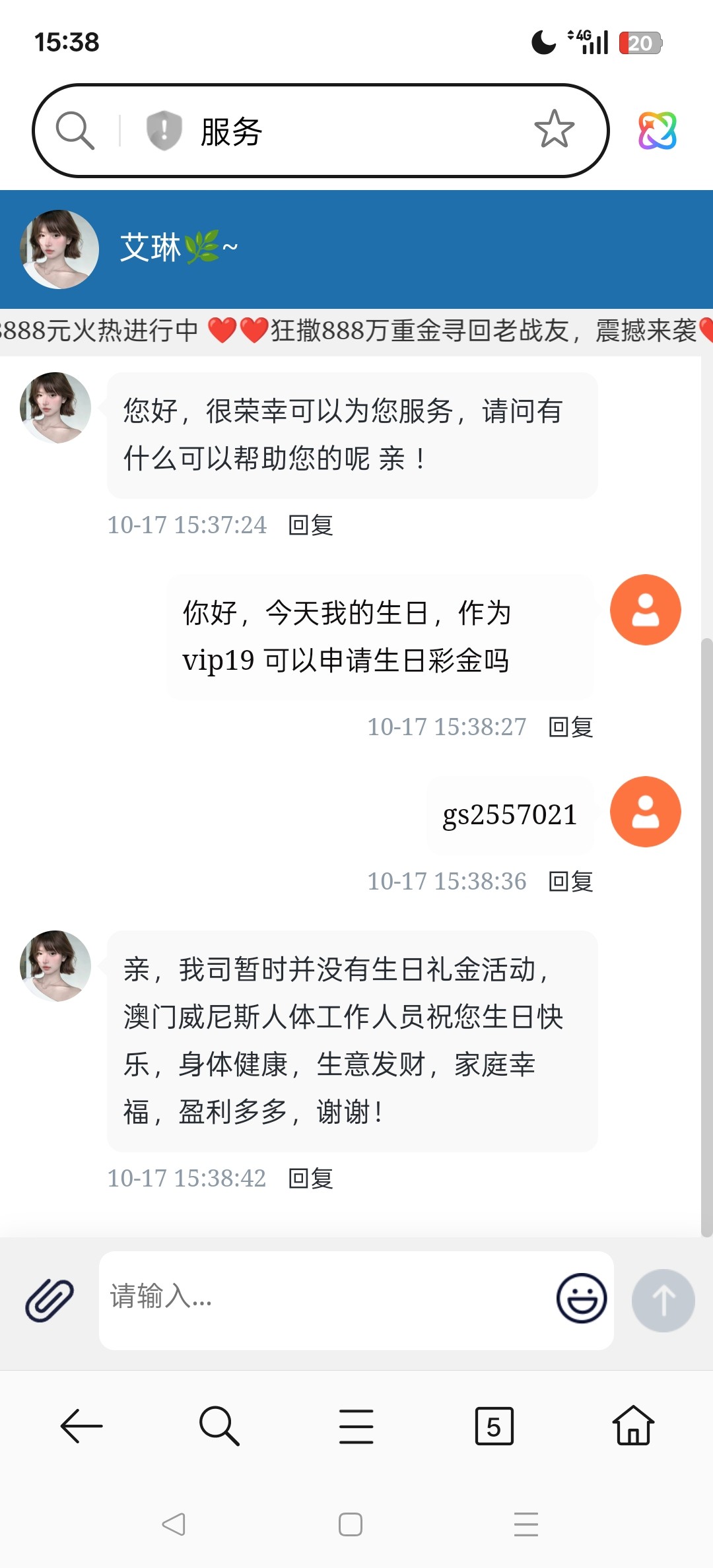 玩到vip19,存了上百万了今天正好生日,就想既然这家等级高去问问,居然说没有这个活动