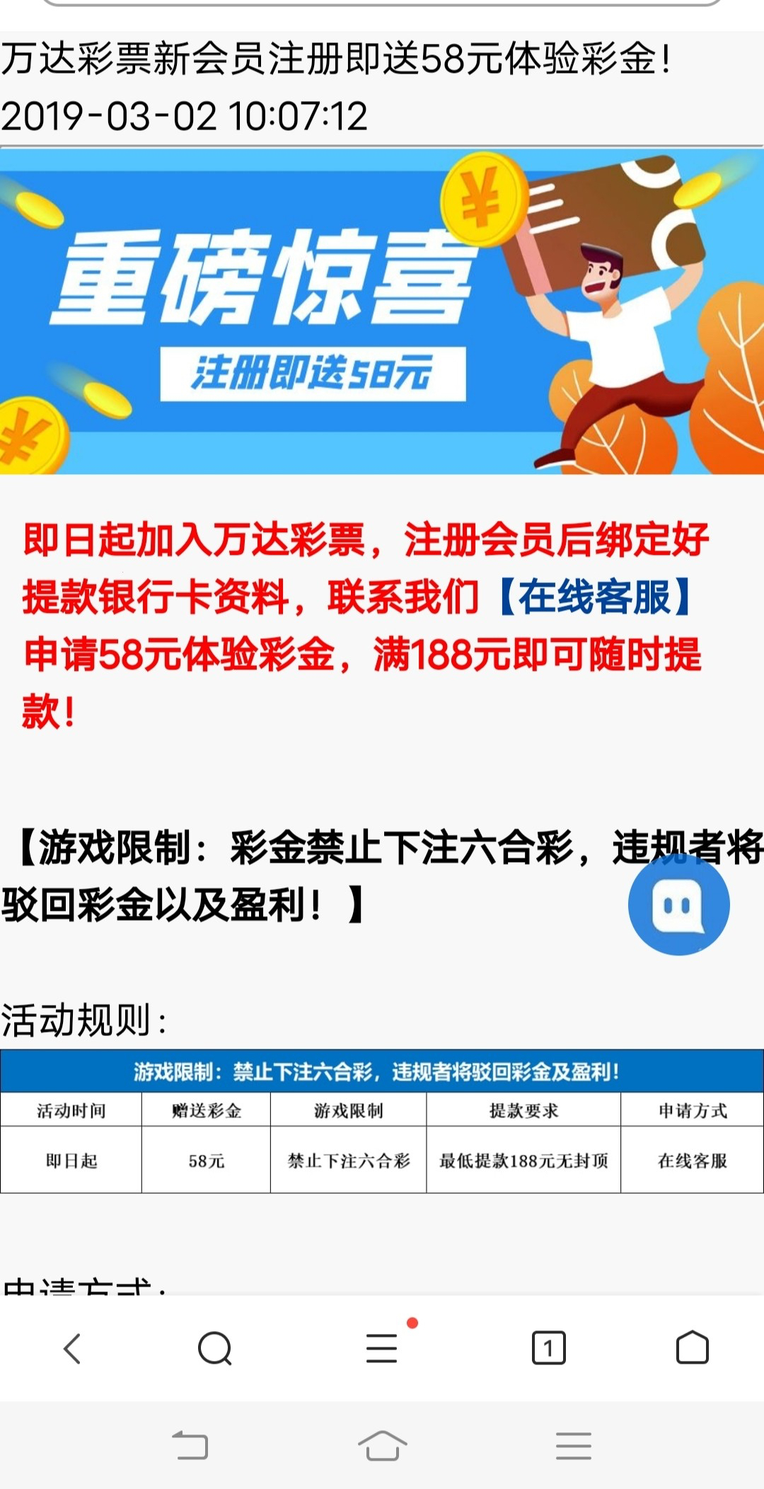 新用户注册绑卡找在线客服申请新人58彩金 满188提款,具体自测