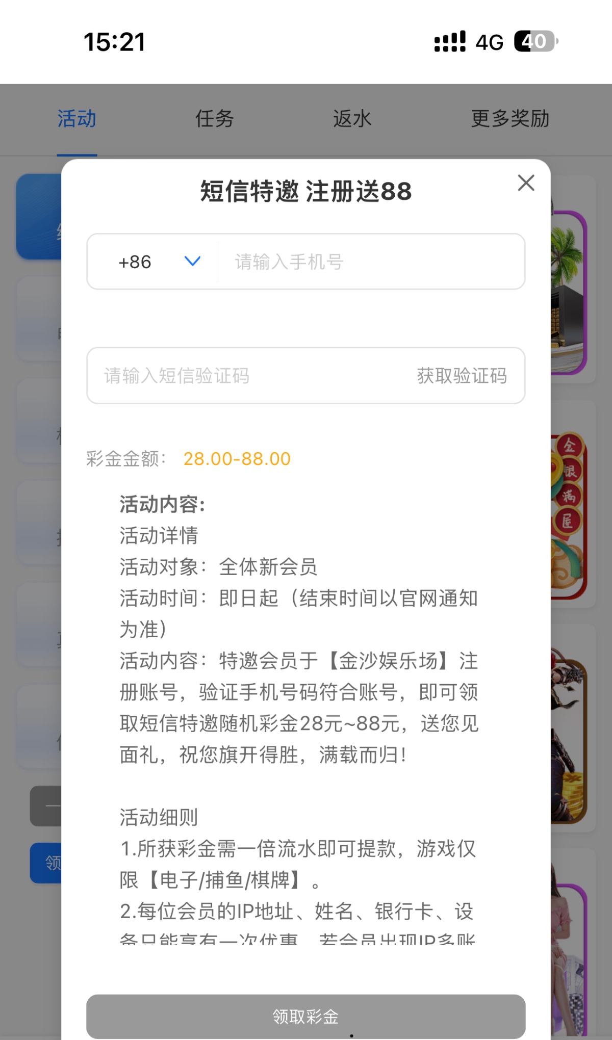 新用户注册绑卡绑定手机号 优惠里自助验证手机号领取彩金 游戏和提款限制自行查看优惠